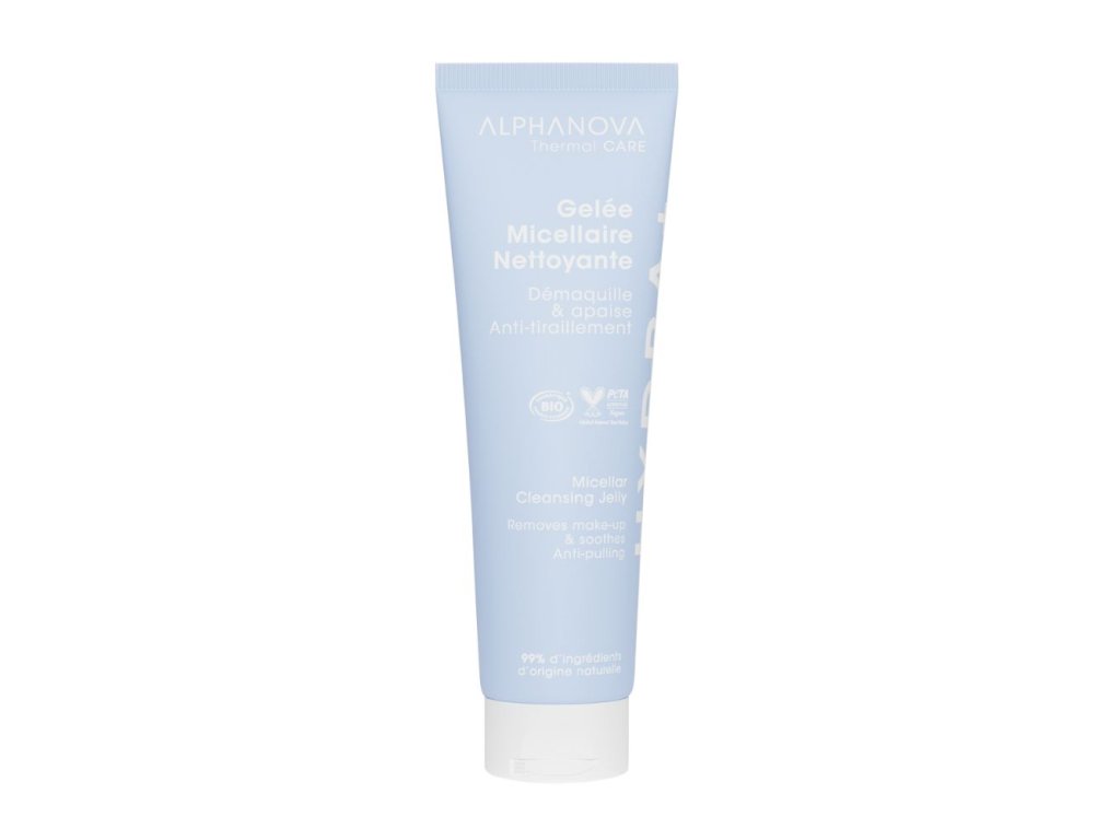 Tyto účinné látky vyrovnávají a zklidňují pokožku náchylnou k podráždění a pnutí. Pleť je zářivá, čistá, tonizovaná a zklidněná. Chrpa pomáhá udržovat pleť vlhkou a osvěženou, což je ideální pro citlivou a podrážděnou pleť. Díky svým antioxidačním vlastnostem chrání pleť před volnými radikály a podporuje její obnovu, což může zpomalit stárnutí. Aloe Vera poskytuje zklidnění, hydrataci a výživu tím, že vyrovnává ztrátu vody a dodává vitamíny a stopové prvky nezbytné pro posílení kožní bariéry. Kyselina hyaluronová navázaná na termální vodu z Provence - posiluje kožní bariéru a poskytuje hlubokou hydrataci. Micelární gel vhodný pro suchou, napjatou pokožku nebo s oslabenou kožní bariérou. Dermatologicky testováno. Tuba vyrobená z recyklovaného a recyklovatelného materiálu. Vegan Certifikováno COSMOS ORGANIC INCI: Aqua, Glycerin, Centaurea Cyanus Flower Water*, Spiraea Ulmaria Flower Water*, Caprylyl / Capryl Glucoside, Xanthan Gum, Sodium Hyaluronate, Cyperus Papyrus Leaf Cell Extract, Aloe Barbadensis Leaf Juice Powder*, Bisabolol*, Sodium Gluconate, Biosaccharide Gum-1, Glyceryl Caprylate, Polyglyceryl-6 Caprylate, Polyglyceryl-3 Cocoate, Polyglyceryl-4 Caprate, Polyglyceryl-6 Ricinoleate, Sodium Levulinate, Sodium Benzoate, Potassium Sorbate, P-anisic Acid, Citric Acid, Parfum 99 % složek přírodního původu, 42 % BIO složek.Doplňkové parametry