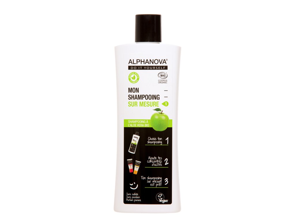 Alphanova DIY je řada produktů pro péči o vlasy, jejichž cílem je poskytnout každému uživateli jedinečný zážitek tím, že si přizpůsobí svůj organický šampon podle potřeb svých vlasů. Chcete-li to udělat, stačí si vybrat jeho základ (organický šampon s vůní třešní, jablek nebo hrušek) a přidat jeho přirozené aktivní koncentráty. NÁVOD K POUŽITÍ „MŮJ VLASTNÍ ŠAMPON“ (1) Odšroubujte víčko BIO šamponu ALPHANOVA DIY®. (2) dle vlastního výběru přidejte aktivní koncentrát do organického šamponu - 1 celá lahvička nebo různé kombinace lahviček (max. 50 ml koncentrátu do jednoho šamponu), to znamená, pokud budete chtít např. 2 lahvičky, tak z každé odlijete půlku a zbytek schováte na příště. (3) Šamponem dobře protřepejte. Váš šampon na míru je připraven! INCI: Aqua, Lauryl glucoside, Disodium cocoyl glutamate, Cocamidopropyl betaine, Anthemis nobilis flower water*, Citric acid, Glycerin, Sodium chloride, Aloe barbadensis leaf juice powder*, Hydrolyzed jojoba esters, Hydrolyzed wheat protein, Bisabolol*, Sodium PCA, Parfum, Sodium cocoamphoacetate, Sodium cocoyl alaninate, Sodium cocoate, Sodium hydroxide, Sodium cocoyl glutamate, Coconut acid, Sodium benzoate, Potassium sorbate.Doplňkové parametry