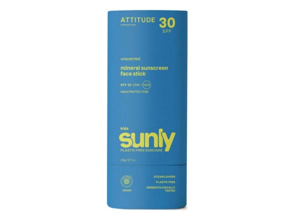 Attitude Dětská 100% minerální ochranná tyčinka na obličej a rty SPF 30 bez vůně 20 g