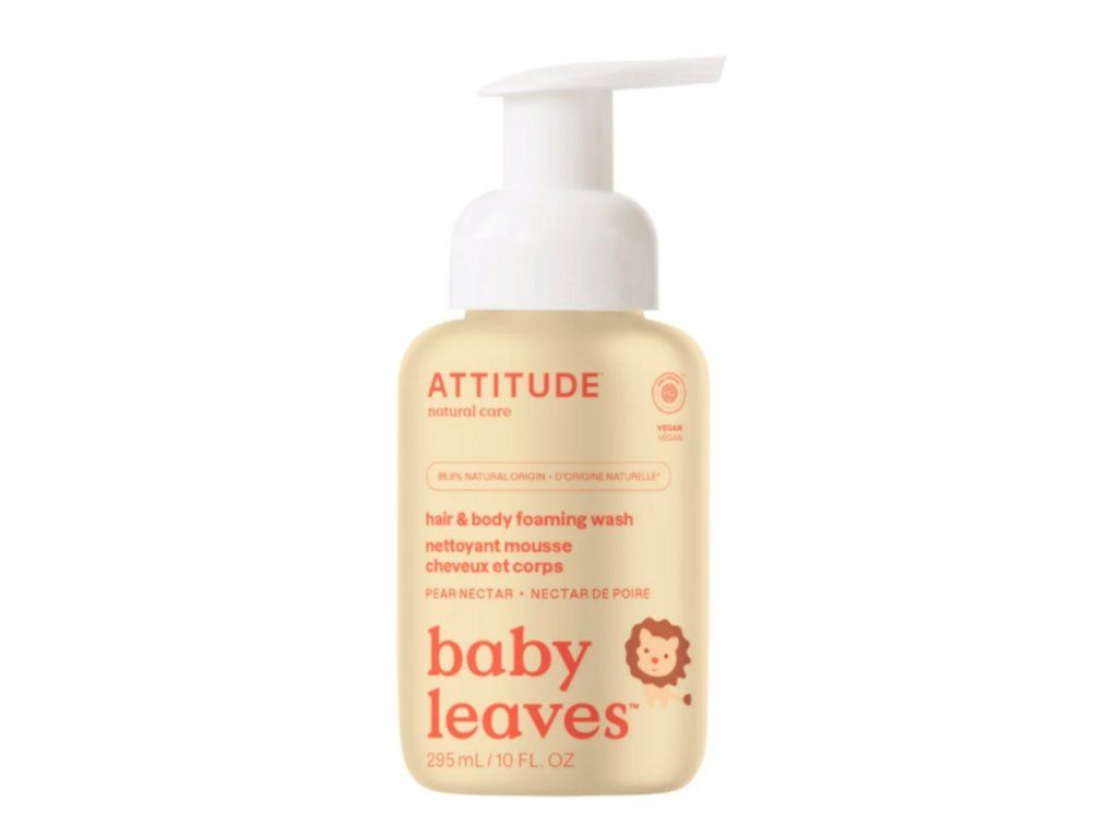 Listy borůvky jsou bohaté na vitamíny a minerály a jsou známé pro jejich zklidňující a ochranné vlastnosti. Ideální pro děti jako přirozená ochrana pro jejich jemnou a citlivou pokožku. Výtažky ze semen moringy činí šampón Baby leaves ještě výjimečnější. Semena moringy obsahují velké množství vitamínů, minerálů a proteinů. Úžasná aktivní složka těchto semen zamezuje vstřebávání škodlivin z ovzduší a dalších poškozujících vnějších vlivů. Příjemná vůně hruškové šťávy z přírodních zdrojů. Má certifikaci EcoLogo, která potvrzuje šetrnost k životnímu prostředí. Více o této certifikaci. Také má certifikaci EWG ("Environmental Working Group"), která pomáhá lidem vybírat jen ty zdravé, bezpečné a k přírodě šetrné produkty. Kosmetika Baby leaves získala od této neziskové organizace nejvyšší hodnocení. Více o této certifikaci. Všechny produkty ATTITUDE jsou bez živočišných složek, netestované na zvířatech. ATTITUDE je členem programu PETA („People for the Ethical Treatment of Animals“), což je největší nezisková organizace bojující za práva zvířat na světě. Nepřítomnost škodlivých látek je testována nezávislou laboratoří. Pro výrobu produktů ATTITUDE jsou použity 100% obnovitelné zdroje energie. 100% recyklovatelný obal. Ve výrobcích ATTITUDE najdete jen složky šetrné k našemu zdraví („worry-free ingredients“), a to bez kompromisů. Složení (v angličtině): aqua, decyl glucoside, coco-glucoside, glycerin, dicaprylyl ether, glyceryl oleate, citric acid, sodium benzoate, lauryl alcohol, potassium sorbate, vaccinium angustifolium (blueberry / bleuet) leaf extract, maltodextrin, moringa oleifera seed extract, gamma-undecalactone (sweet fruit), ethyl acetate (pear)Doplňkové parametry