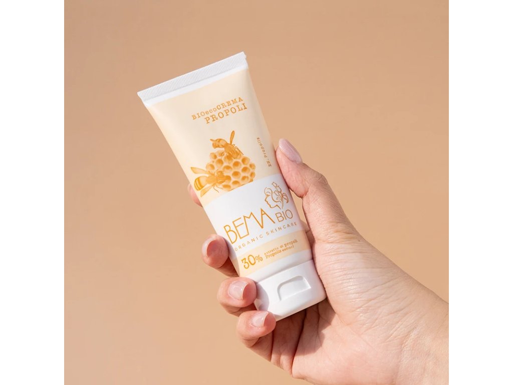 BemaBio – BioEcoCrema Propolis je vysoce hydratační přírodní krém, ideální pro problematickou pleť se sklonem k akné a kožním nedokonalostem. Obsahuje 30% extraktu z propolisu, který je známý svými antifungálními a antibakteriálními vlastnostmi, podporuje regeneraci pokožky a urychluje hojení. Díky komplexu minerálních stopových prvků, jako je železo, hořčík, křemík, měď a zinek, intenzivně vyživuje a remineralizuje pleť, čímž zlepšuje její vzhled i celkové zdraví.