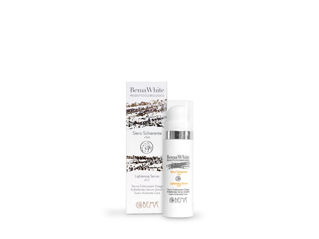 Bema White – Lightening Serum je speciální sérum určené k redukci zabarvení pleti a boji proti hyperpigmentaci. Díky fytobělicímu komplexu, na bázi granátového jablka a betainu, doplněného o arbutin a medvědici, sérum působí cíleně a intenzivně, čímž vyrovnává tón pleti.