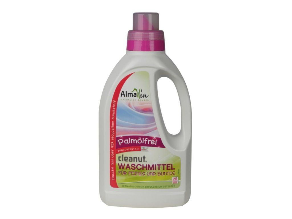 Pro lepší účinek jsou mýdlové ořechy smíchány s BIO rostlinný mýdlem a dalšími BIO ingrediencemi. Almawin Cleanut obsahuje navíc aktivní látky z pšenice, brambor a cukrové třtiny. Toto unikátní složení je stejně efektivní, jako běžný výrobek s aktivními látkami z ropy.