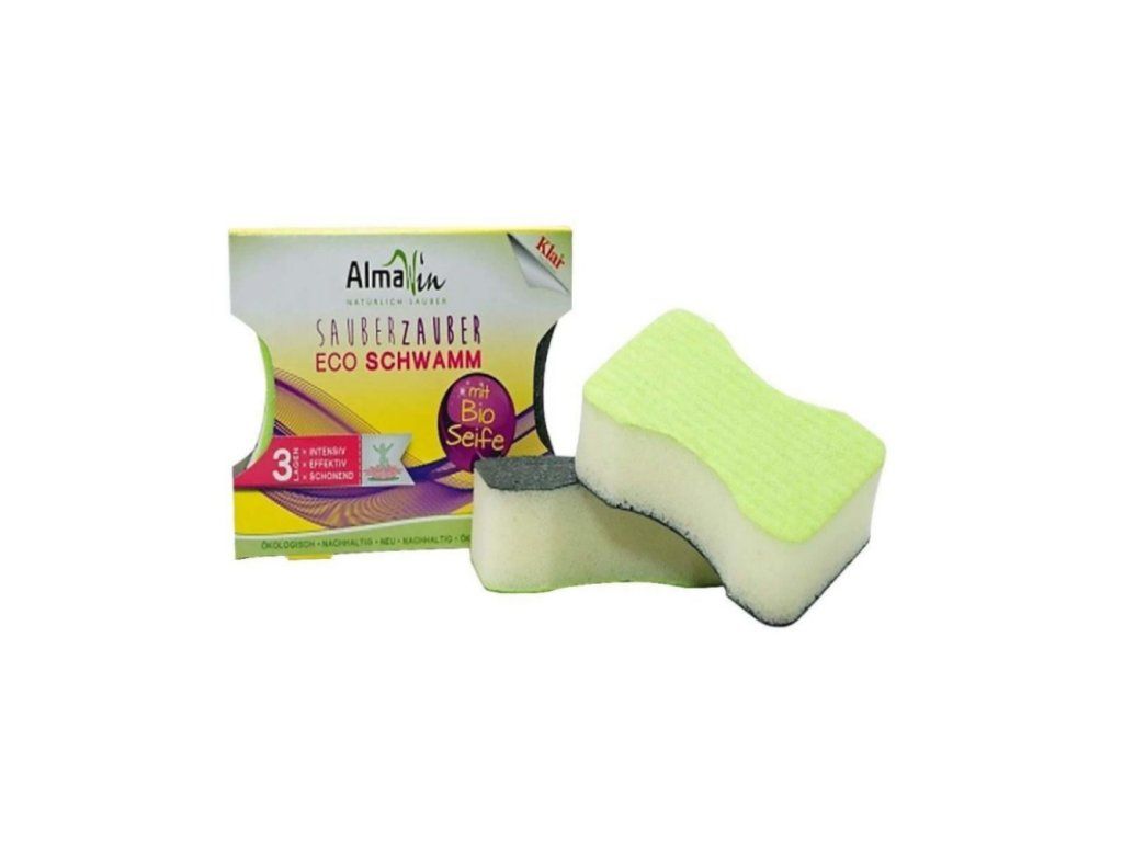Zelená vrstva z měkkého flísu je vyrobena z bavlny a je vhodná na šetrné čištění hladkých povrchů, choulostivých na poškrábání. Obsah mýdla lze snadno doplnit. Stačí navlhčit mýdlo AlmaWin nebo Klar a vetřít do povrchu s ocelovou vlnou. Takto lze houbičku používat opakovaně.
